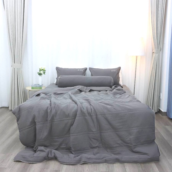 Bộ chăn ga bốn mùa màu xám