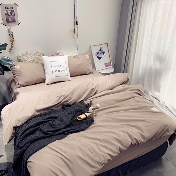 Bên cạnh các gam màu như xanh coban, xanh lá, vàng nhạt,...các bạn có thể thử sử dụng chăn ga gối đệm 1 màu có tone màu be trung tính. Màu sắc này luôn là sự lựa chọn hàng đầu dành cho những người yêu thích cảm giác ấm cúng, tự nhiên, mộc mạc.