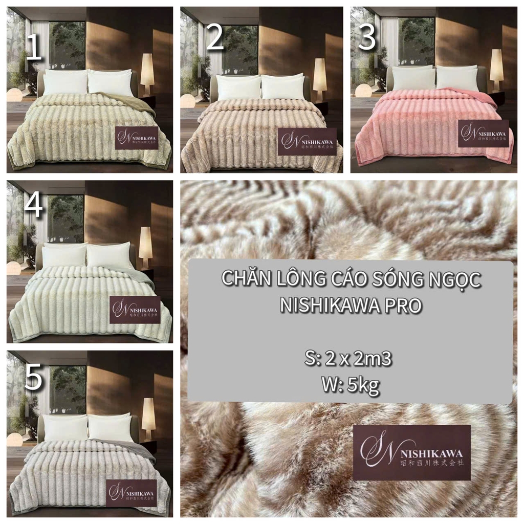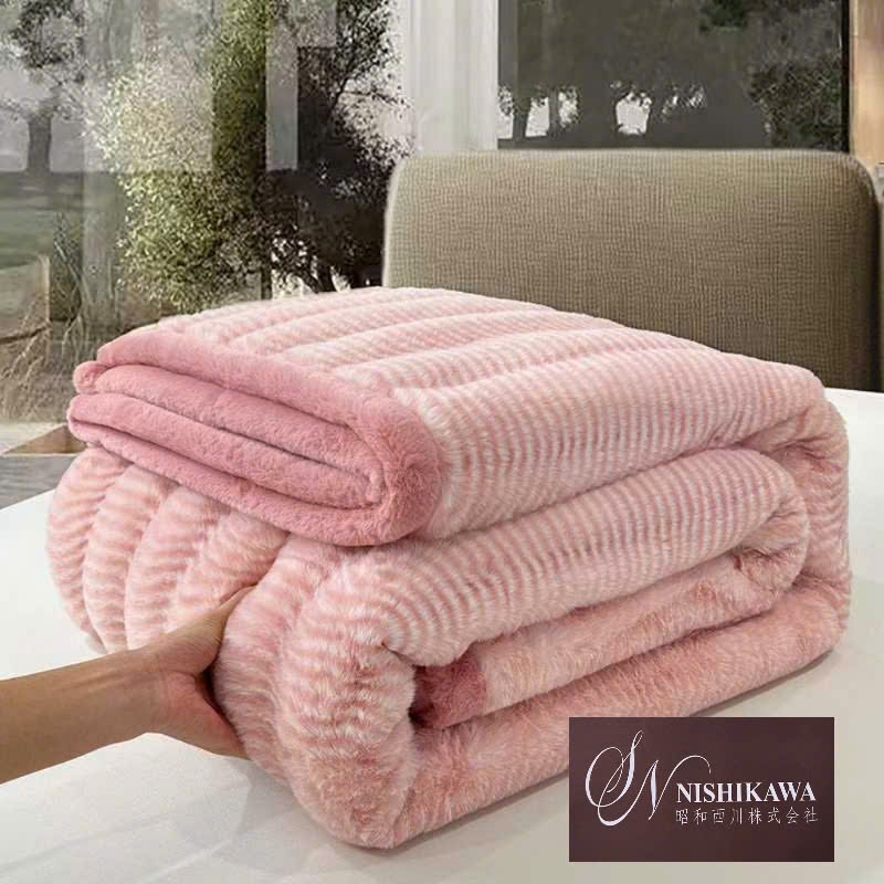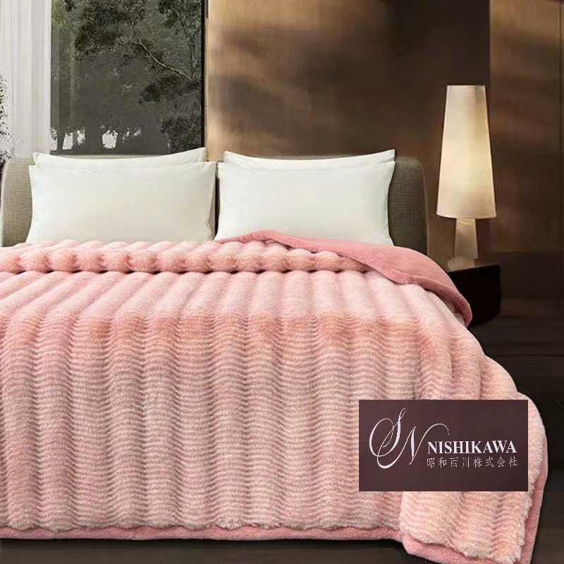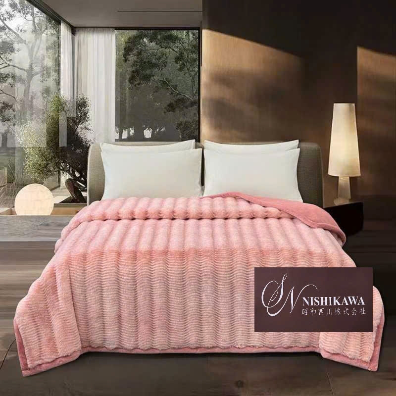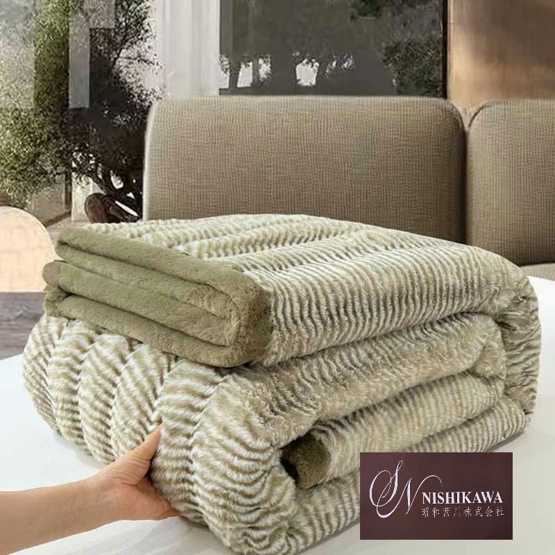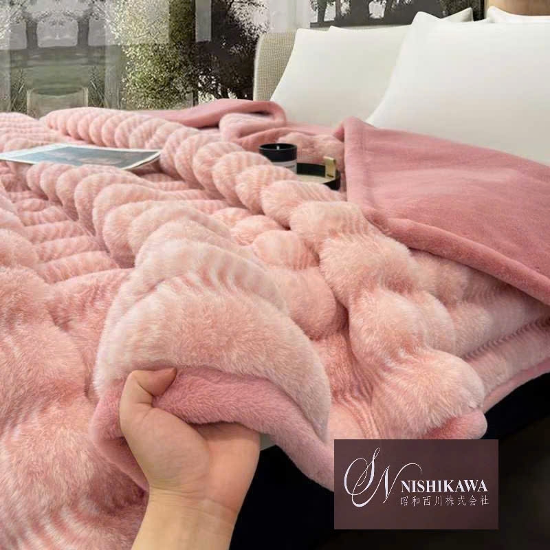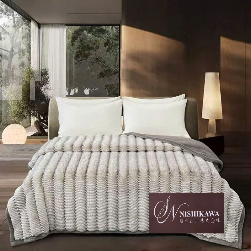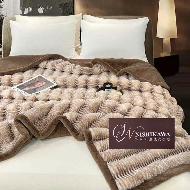 Bề mặt chăn được dệt nổi 3D dạng sóng ngọc mềm mại, tạo cảm giác sang như ánh ngọc dưới ánh đèn phòng ngủ. Mỗi đường gợn lông đều tơi mịn, đều đặn, mang đậm phong cách Nishikawa – tinh tế trong từng sợi chỉ.