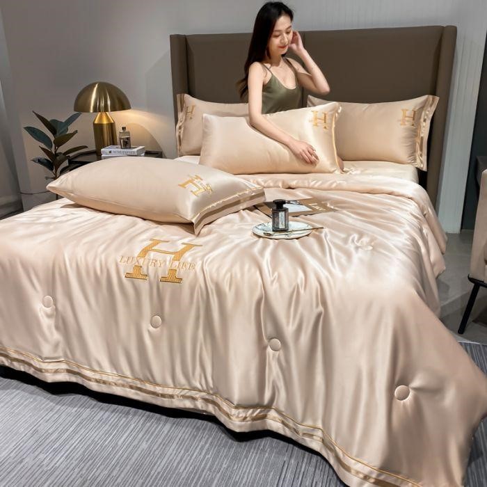 - Chăn ga lụa: Chăn ga lụa có độ bóng, mịn và êm ái, tạo cảm giác sang trọng và đẳng cấp. Loại chăn ga này thường được sử dụng vào mùa hè để cung cấp sự thoáng mát cho giấc ngủ.