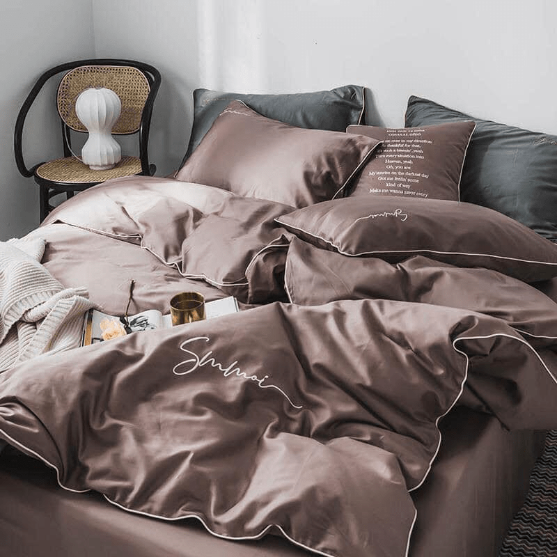 Bộ chăn ga gối đệm màu nâu dành cho gia chủ mệnh Thổ